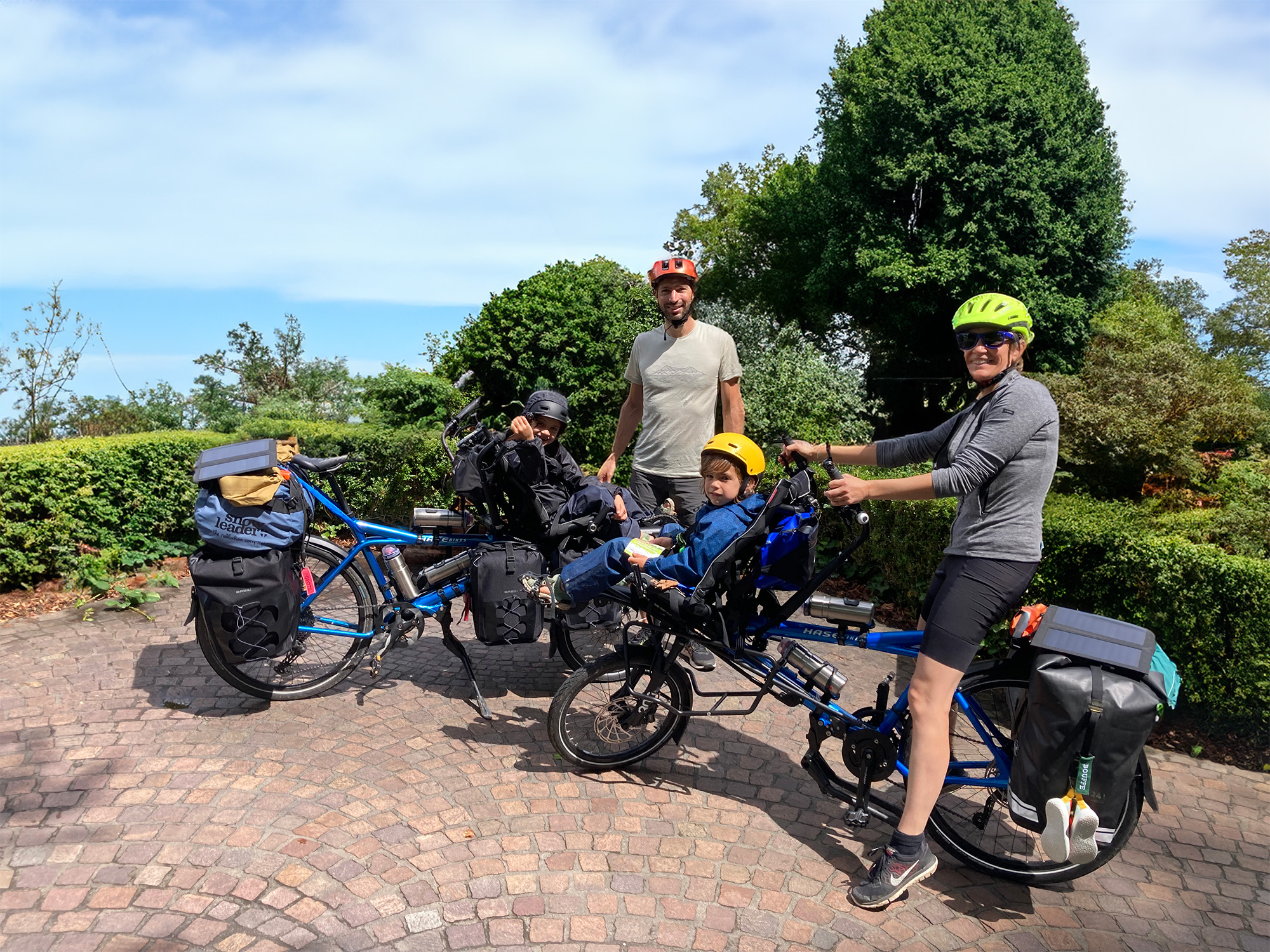 Thibault et sa femme ont choisi de rejoindre le lac de Constance avec leurs 2 enfants en tandems semi-couchés.